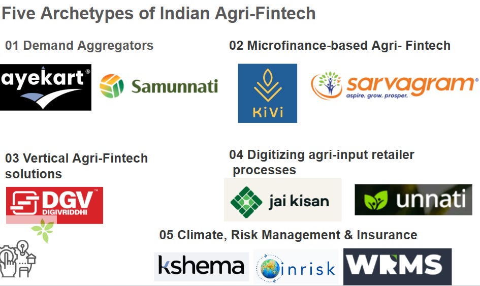 wrote a magisterial blog post where he argued that if the fintech sector were a startup, India’s fintech would have achieved Product Market Fit. But what about agri-fintech? As I detailed out earlier, I see five archetypes of agri-fintech players