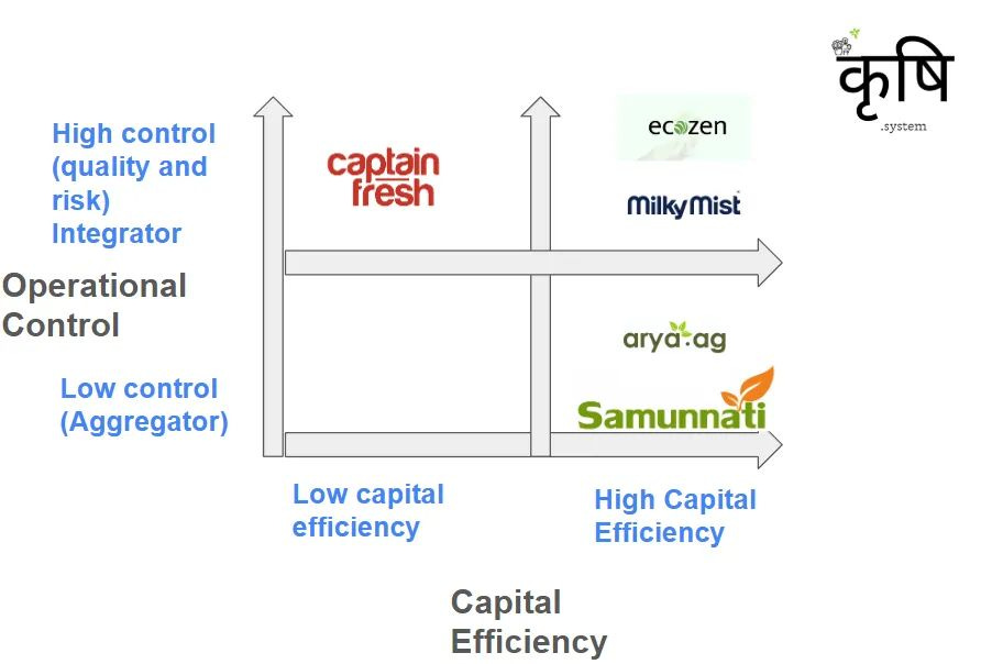 Those who have cracked this asset-light/asset-heavy debate are those who have discovered the golden mean of asset control. Either through ownership of IP (as in the case of Ecozen) or critical infrastructure (as in the case of Captain Fresh and Milky Mist) or through ownership of trust and relationship layer (as in the case of Samunnati and Arya.Ag).