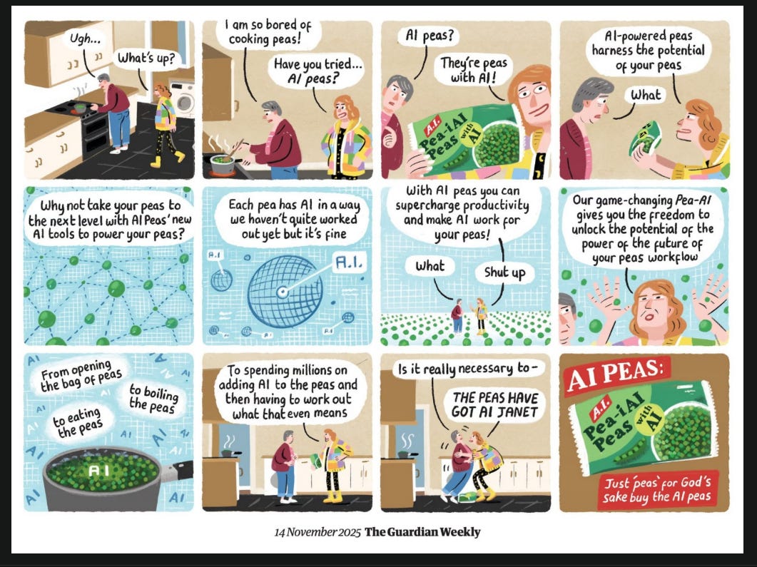 I found the one on AI especially relevant the comic and the longer explainer. I’ve also been frustrated by the number of posts about “GenAI will fix smallholder agriculture”. It’s not a tech problem! But I guess it is a way to play the VC grift game.